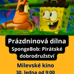 V pátek 30. ledna jsou pololetní prázdniny a kino zve od 9 hodin na oblíbenou Prázdninová dílnu + SpongeBob: Pirátské dobrodružství, po tvoření se bude promítat. Od 20 hodin pak promítáme novou českou pohádku Princezna stokrát jinak. Princezna Stella a mladý Johan se vydávají za lékem na tajemné proměny — a objevují, že největší silou je láska. Rodinná pohádka plná dobrodružství.