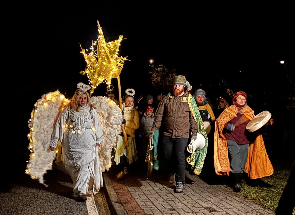Po cestě byla připravena jednotlivá stanoviště s vánočními postavami. U každého z nich se odehrával další díl vánočního příběhu a jednotlivé výjevy na sebe navazovaly. Trasa vedla od Hvížďalky směrem k plovárně, kde putování vyvrcholilo. Na plovárně čekala Marie s Josefem a Jezulátkem v náručí. Postupně se k nim připojily i ostatní postavy, které se k průvodu přidávaly v průběhu cesty. Kolem ohniště se shromáždili všichni účastníci a společně se sborem Anonym Voice zazpívali koledy. Lidé si zde také mohli odnést betlémské světlo.