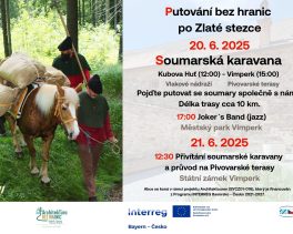 KUBOVA HUŤ/ VIMPERK – Bavorská soumarská karavana, k níž se může připojit veřejnost, vyráží v pátek 20. června ve 12 hodin z Kubovy Huti od železničního nádraží do Vimperka, kam by měla dorazit kolem 15. hodiny. Hlavní program Slavnosti přátelství pak začne v sobotu 21. června ve 12.30 na zámku Vimperk…