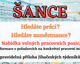 V aktuálním vydání Jihočeských týdeníků najdete přílohu Šance s nabídkou volných pracovních míst v regionu.