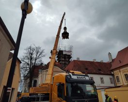 BOROVANY – Několikatunová konstrukce se ve středu 15. dubna kolem poledne pomalu vznesla nad střechu kostela Navštívení Panny Marie v Borovanech na Českobudějovicku. Dělníci za pomoci jeřábu a pokynů z vysílaček usadili novou kostelní báň, která se stala vrcholem probíhající rekonstrukce věže. Operaci sledovaly stovky lidí.