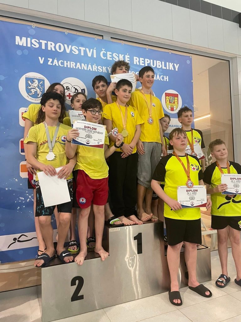 Štafeta ve složení: Jakub Zmeko, Patrik Šipon, Šimon Mikeš a Nikolas Hozman získala v prvním závodě – 4×25 metrů tažení figuríny třetí místo. Ještě lepší umístění a titul mistrů ČR získali v disciplíně 4 x 25 metrů záchranná polohová štafeta. Před třemi týdny se krumlovských záchranářům skvěle dařilo v Táboře, do Mladé Boleslavi to měli podstatně dál, ale cesta se vyplatila. Mládež bohužel stále nemá optimální podmínky pro přípravu na závody, ale i tak podává krásné výkony, což je také zásluhou Tomáše Svobody a Jakuba Pauluse. Medaile jsou krásné, ale mnohem více se cení snaha bojovat a nevzdávat se, a to je znát u všech mládežníků. Tyto vlastnosti poté využijí během služeb na Lipenské přehradě.