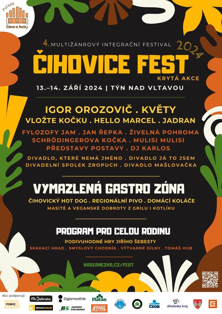 Festival Čihovice Fest pořádá Domov sv. Anežky letos už počtvrté. Hlavní myšlenkou akce je prostřídat na pódiu profesionální umělce, kapely a divadla z okolí s muzikanty a herci z řad lidí s mentálním postižením. Právě těmto lidem Domov sv. Anežky pomáhá na cestě k samostatnému životu. A kultura je jedním ze způsobů, jak podpořit jejich integraci do společnosti. „Každý rok sem jezdí i lidé s hendikepem z Rakouska a program si užívají, aniž by uměli česky. Asi neexistuje lepší důkaz toho, že umění je univerzální jazyk, kterému rozumíme všichni,“ popisuje festivalový ředitel Václav Běťák.