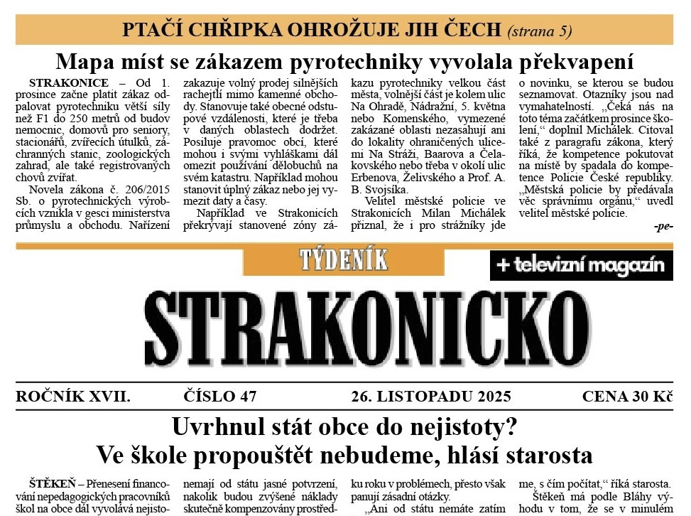 Co se dočtete v novém vydání Týdeníku Strakonicko?