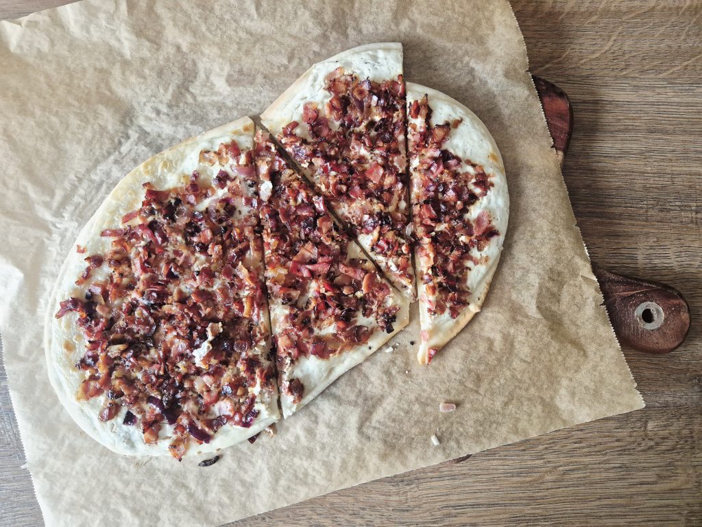 Tenké těsto, slanina, cibule a pořádná dávka křupavosti. Tarte flambée, známá také jako alsaská pizza, je jednoduchý recept z pár surovin, který si snadno a rychle připravíte i doma.