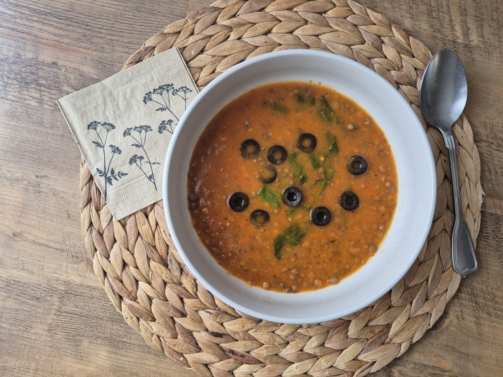 DOBROTY: Rajčatová polévka s čočkou a olivami