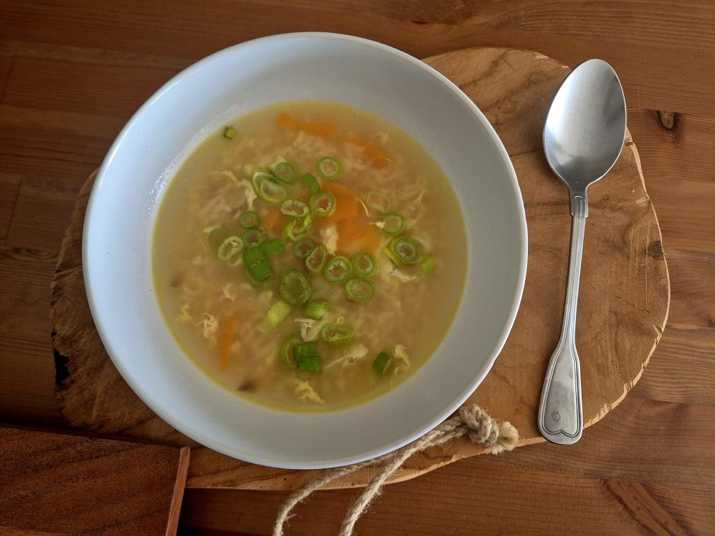 Když v lednici nezbývá téměř nic – jen miska uvařené rýže z předchozího dne. Přesně tak vznikla tahle jednoduchá polévka. Stačí jedna malá cibule, jedna střední mrkev, jeden litr vývaru (nebo vody doplněné jedním bujónem), jeden plný hrnek již uvařené rýže a jedno čerstvé vejce.