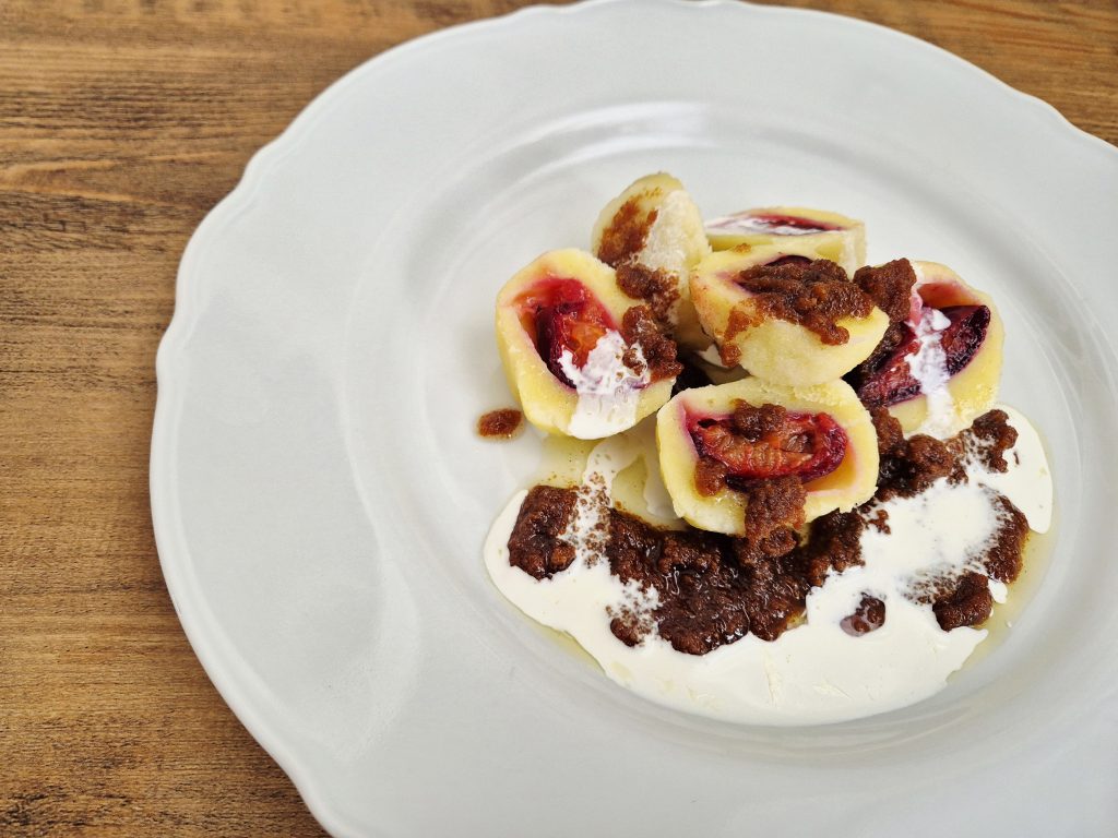 Švestkové knedlíky patří mezi nejoblíbenější české dezerty. Nadýchané tvarohové těsto a sladká švestka uvnitř jsou prostě klasika, kterou všichni známe. My jsme jim ale dali nový kabát – místo klasické strouhanky servírujeme knedlíky s přelivem z lotuskových sušenek a smetanou.