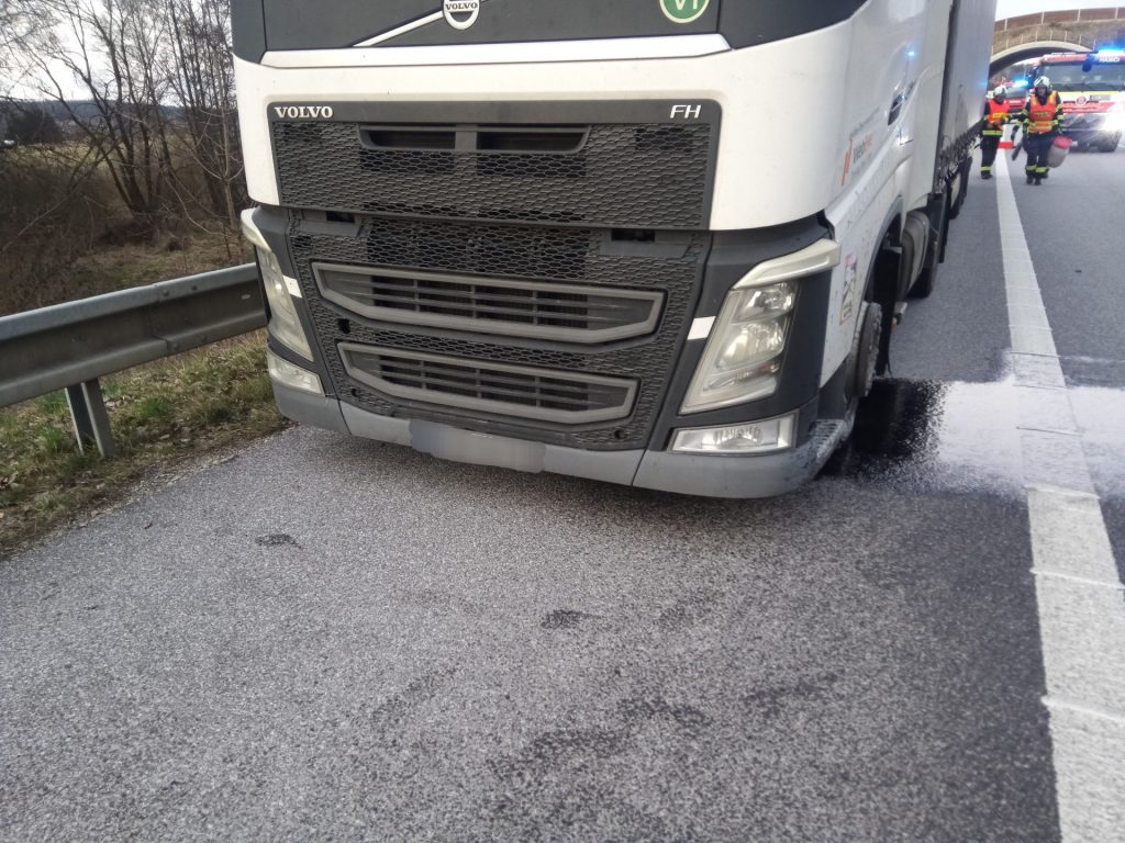 PRAHA/ KAPLICE – Dopravní komplikaci na D3 ve směru z Prahy na Kaplici musí aktuálně očekávat řidiči na 122,5 kilometru. Stojí zde odstavený kamion a hasiči zasahují u masivního úniku provozních kapalin do jízdního pruhu.