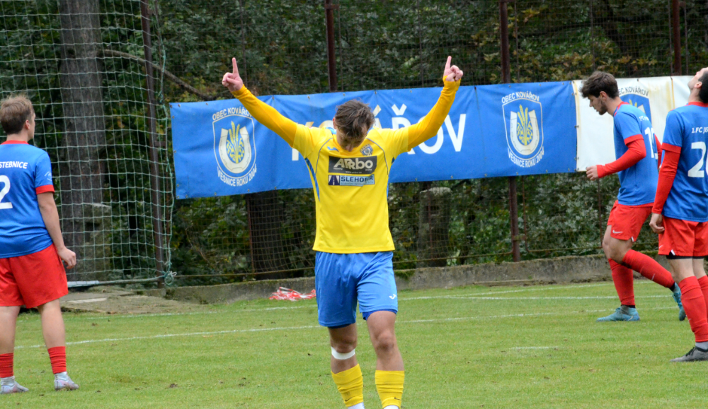 Sobotní dopoledne však patřilo kovářovskému Koblasovi. Když už se zdálo, že budou na koni hosté, tak ze strany poslal krásný míč do vápna, který přetavil k gólovou přihrávku po krásném voleji Jakub Suchan a vystřelil Kovářovu tři body.