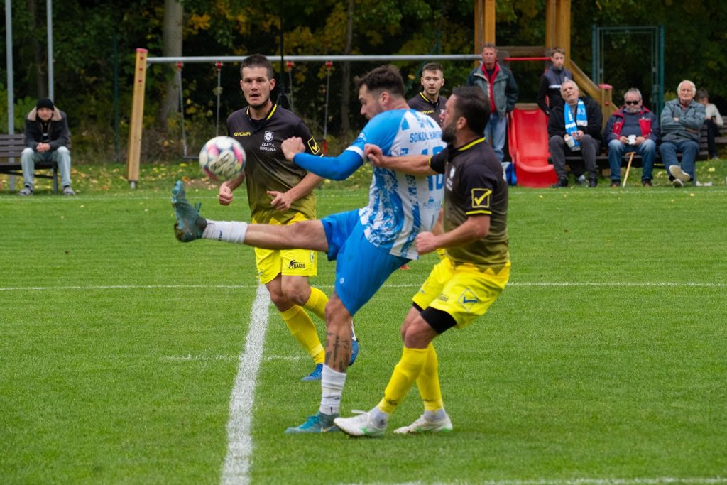 Fotbalisté Zlaté Koruny jsou jediným účastníkem 6. ligy napříč oběma skupinami, který ještě nezažil hořkost porážky. Jejich stoprocentní bilance se ale minulý týden otřásla v základech, když na půdě tehdy předposledních, a dnes už posledních, Sousedovic dlouho drželi jen remízu 1:1. Až v nastaveném čase rozhodl Matěj Švec.