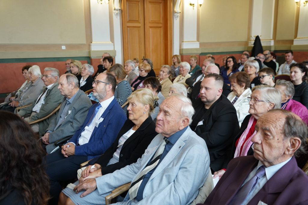 Dopolední program vyvrcholil v aule gymnázia setkáním s čestnými hosty, kde zástupci města, akademické sféry, partnerských škol i významní absolventi společně zavzpomínali na historii školy a diskutovali o výzvách současného vzdělávání.
