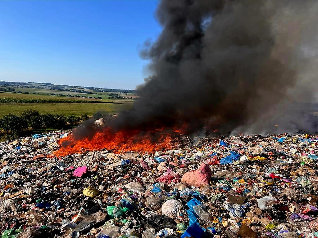 ŽELEČ - Hustý tmavý dým stoupající ze skládky komunálního odpadu mohli zaznamenat lidé v neděli 10. září odpoledne v Želči na Táborsku a okolí. Plameny pohltily na skládce plochu o rozměrech přibližně 20 krát 10 metrů.