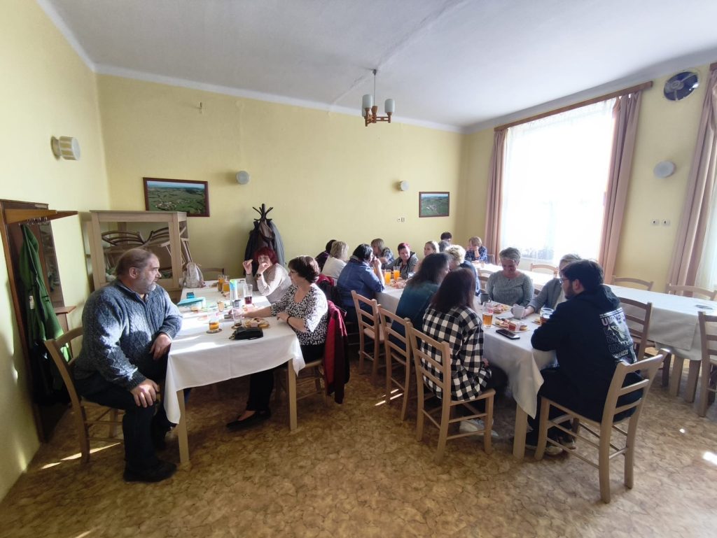 Kolem třetí hodiny odpoledne ještě budova staré školy působila opuštěně. Slyšet bylo jen rádio a praskání v kamnech. Ve společenské místnosti, kterou tu místní mají, byl zatím jen místostarosta z Hoslovic Roman Kočí, který chystal zázemí. „Uvidíme, kolik lidí dorazí,“ hlásil a zvědavě se díval z okna.
