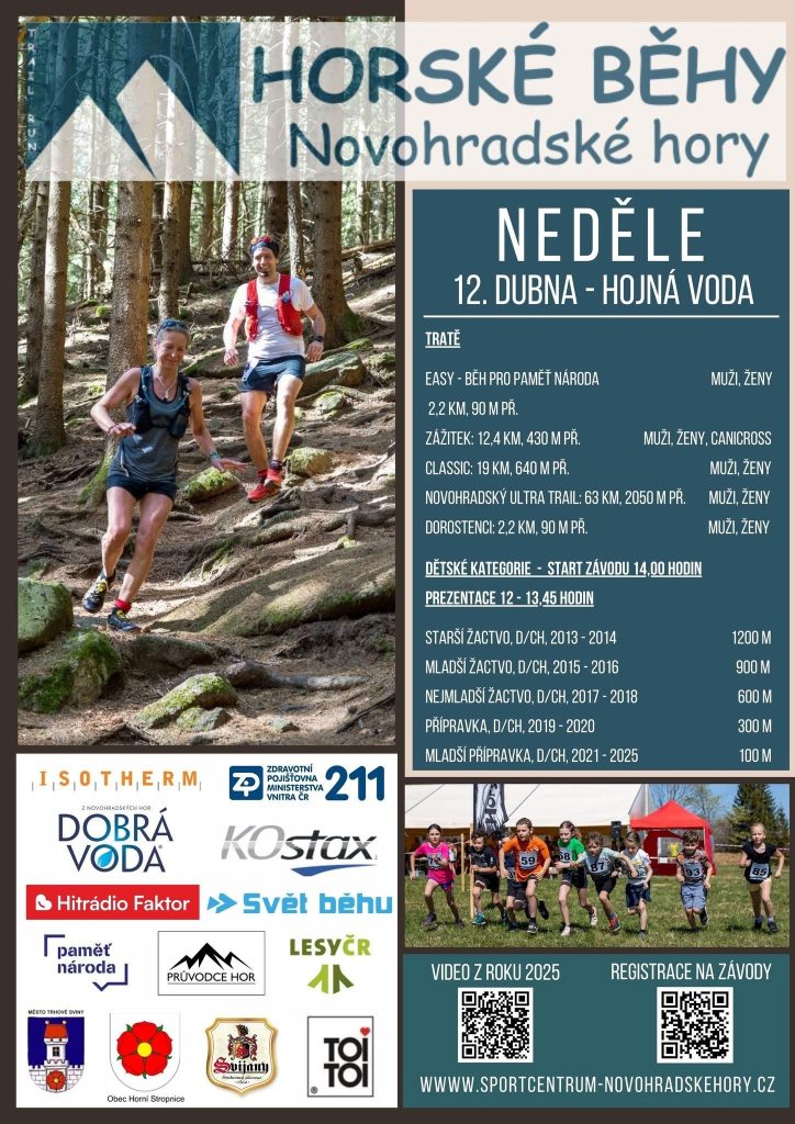 HOJNÁ VODA – Ticho Novohradských hor v neděli 12. dubna brzy ráno přeruší první kroky běžců. Na Hojné Vodě odstartuje 28. ročník Horských běhů, který nabídne tratě od dvou kilometrů až po náročný horský ultra trail. Přidat se mohou sportovci i úplní začátečníci, nebo třeba děti, pro které organizátoři připravili krátké tratě od několika desítek metrů. Dorazit mohou ale i lidé, kteří se chtějí jen dívat.