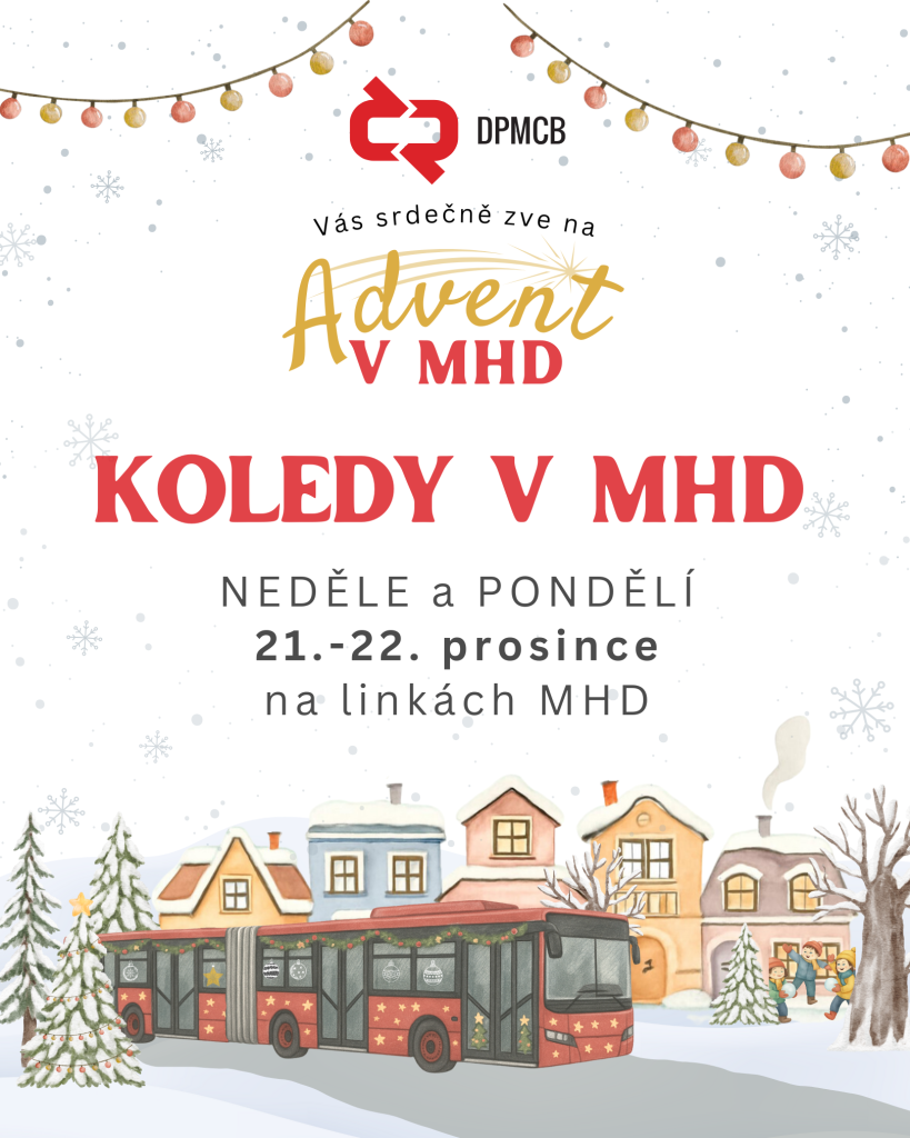ČESKÉ BUDĚJOVICE – Pokud se ve dnech 21. a 22. prosince vydáte na cestu městskou hromadnou dopravou v Českých Budějovicích, čeká vás příjemné překvapení. Na vybraných linkách se objeví mladí hudebníci z Českobudějovicka, kteří cestujícím zahrají vánoční koledy.