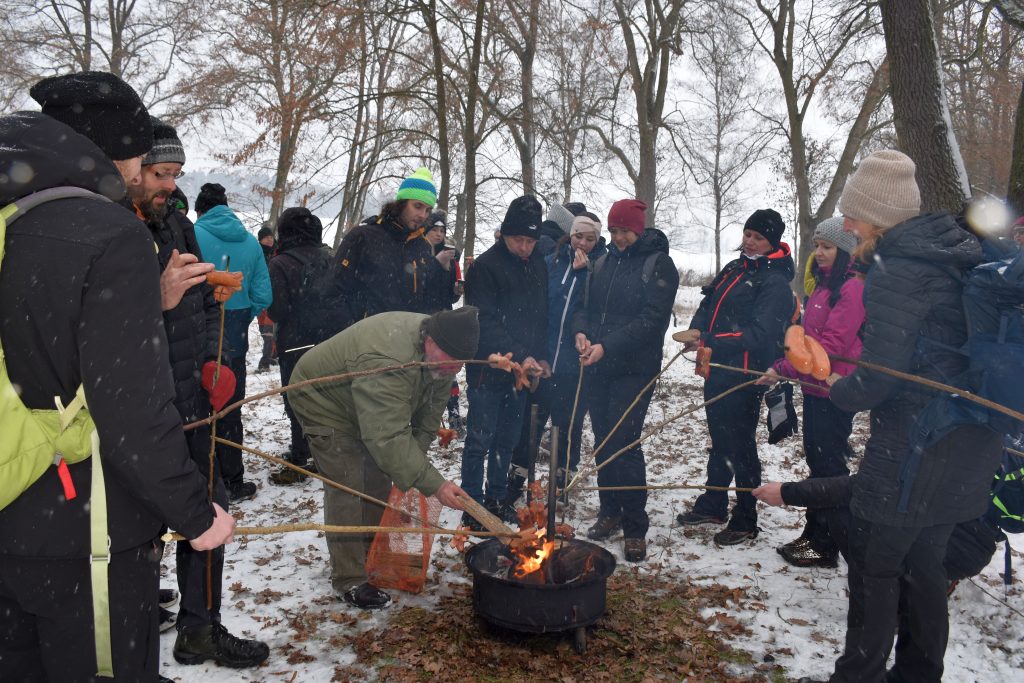 Trasa letos vedla od Hrejkovické hospody na Olšičky, Požáry a ves Jickovice blízko Orlické přehrady. Tam už se cesta stáčela k rybníku Sobík nedaleko Kostelce, kde byla hlavní občerstvovací zastávka s pečením buřtů a teplým čajem na zahřátí. Buřtů nakoupili Kamarádi cest 150 kilo a k nim 80 chlebů z vacovské pekárny, rovnou nakrájených.