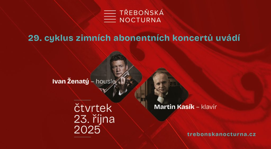 TŘEBOŇ – Zimní koncertní cyklus Třeboňských nocturen vstupuje do svého 29. ročníku a první večer slibuje skutečně mimořádný hudební zážitek. Ve čtvrtek 23. října v 19 hodin zazní v Divadle J. K. Tyla v Třeboni koncert dvou výrazných osobností české klasické hudby – houslisty Ivana Ženatého a klavíristy Martina Kasíka.