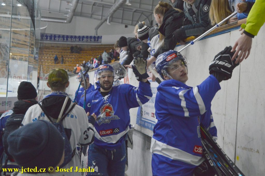Táborští zvítězili nad Příbramí i přes řadu absencí a po dvou nevyužitých dvojnásobných přesilovkách 5:1. Příbrami nepomohly k lepšímu výsledku ani rvačky v závěru. Chválu si od trenéra Aleše Krátošky vyslechl i mladý obránce Marek Čančura, který doplnil oslabenou sestavu. K příštímu zápasu vyrazí Táborští v soboru 4. února do Vrchlabí už z pozice druhého celku tabulky, jelikož Ústí nad Labem na úspěch kohoutů bodově nezareagovalo.