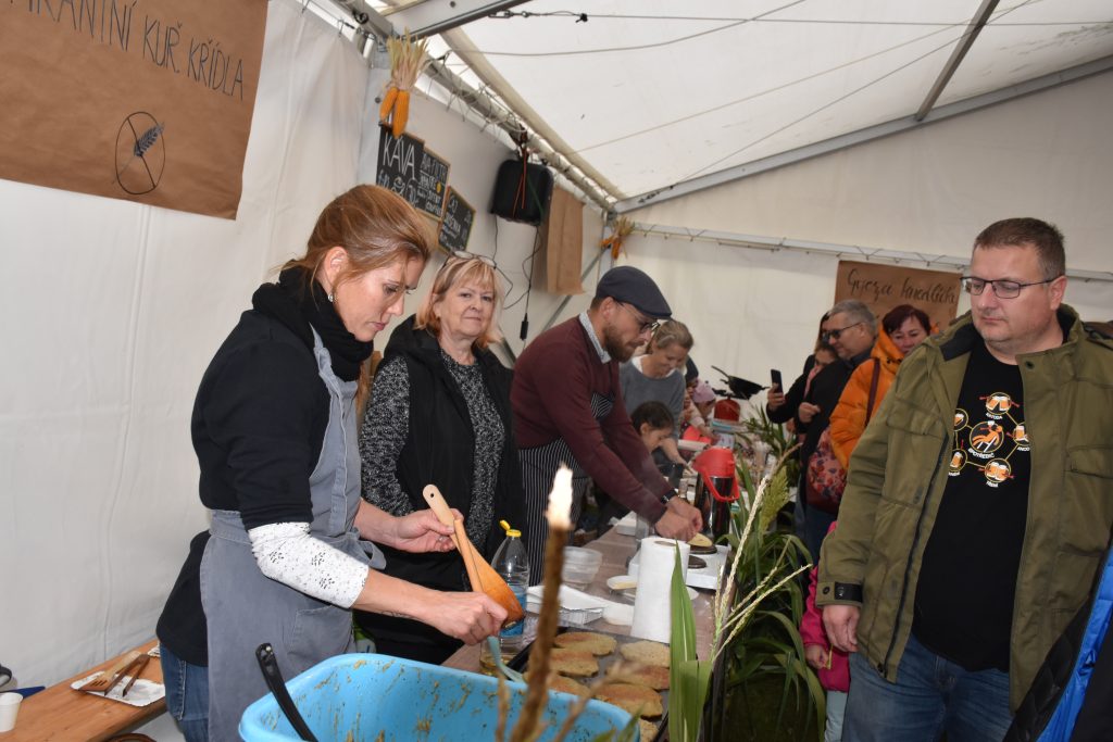 KOVÁŘOV – Náves v Kovářově na Písecku zažila zase jednou v sobotu 4. října nával. Jídlobraní, jehož tradici tu založily Aneta Gillová a Monika Hrochová, mělo už osmý ročník. Přes třicet sousedů a dalších nadšenců přijelo připravovat nejrůznější dobroty a nabízet domácí produkty, ochutnávku si nenechaly ujít stovky lidí nejen z Kovářova, ale i z okolních vesnic nebo Milevska. Akce je pokaždé charitativní. Všichni prodejci si stanoví vlastní ceny a přispívají pak k výtěžku, který putuje tam, kde jsou peníze potřeba.