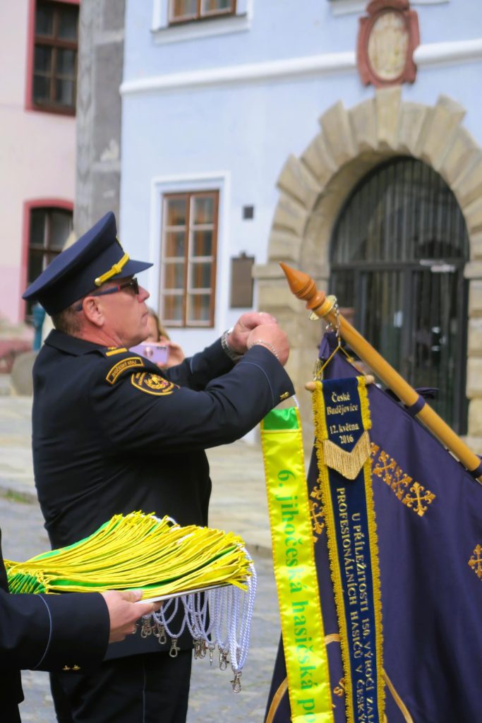 Na duchovní program navázal slavnostní nástup přítomných hasičských sborů na prachatickém náměstí, při kterém jim byly slavnostně předány hasičské stuhy od plk. Ing. Martina Svitáka, ředitele Hasičského záchranného sboru Jihočeského kraje, jež společně se starostou města Prachatice Ing. Janem Bauerem převzali záštitu nad touto bohulibou akcí. Následovala komentovaná ukázka zásahové činnosti místních profesionálních hasičů. Na své si na prachatickém náměstí přišly také děti, pro které bylo připraveno nafukovací skákací auto v podobě hasičské cisterny a několik dovednostních soutěží s hasičskou tématikou.