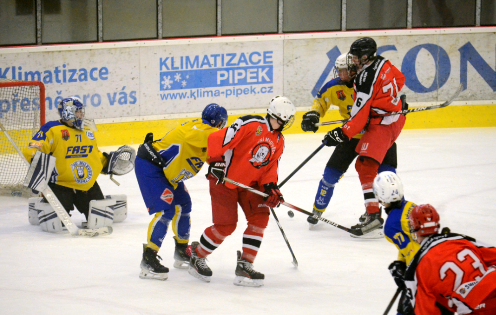 MILEVSKO – Junioři HC Milevsko 1934 dál vládnou své skupině regionální ligy. Aktuálně se o čelo tabulky přetahují pouze s budějovickém DDM, které ale odehrálo více zápasů a vzájemné utkání minulý víkend zvládli lépe Milevšťáci, byť musel trenér Podrabský nasadit vinou mnoha absencí čtyři dorostence. Výbornou formu potvrdili junioři v sobotním domácím zápase proti Pelhřimovu, když rozhodli hlavně drtivou čtyřgólovou první třetinou. Ve zbytku utkání už trochu polevili a přizpůsobili se slabšímu soupeři, ale na pohodlnou výhru to stačilo – 5:2.