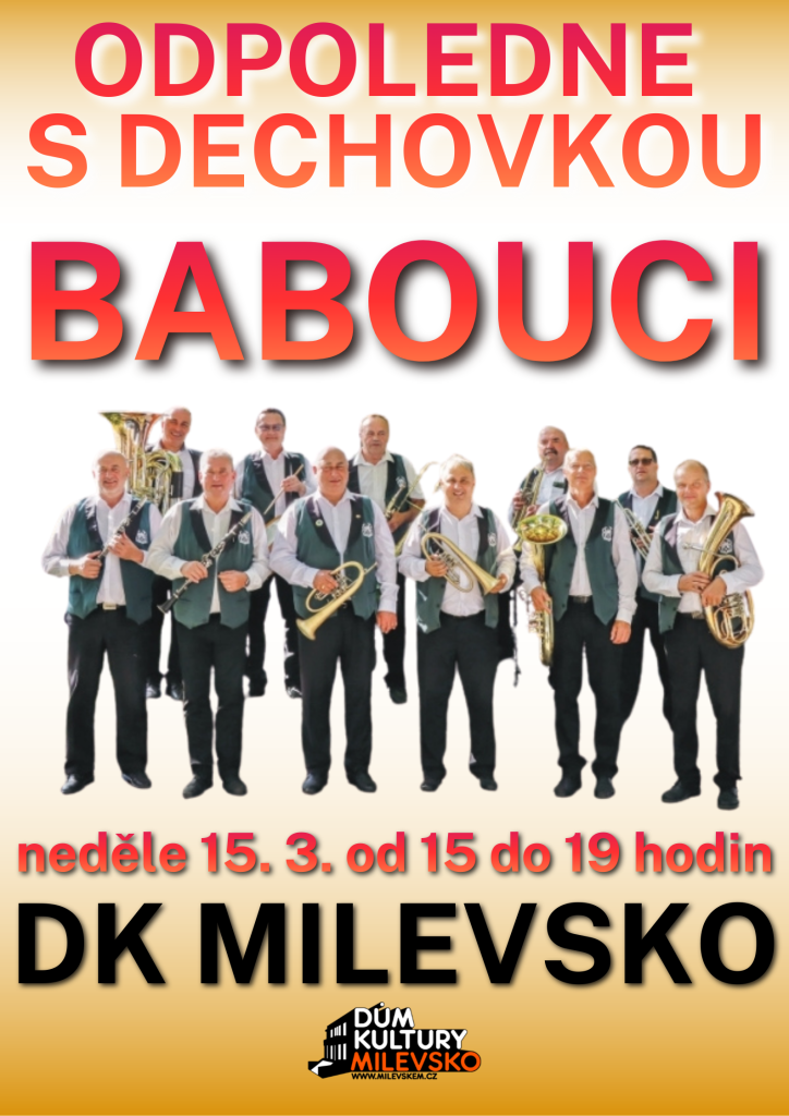 Dům kultury Milevsko srdečně zve v neděli 15. března od 15 hodin na Odpoledne s dechovkou Babouci, legendární jihočeskou dechovkou plnou energie, humoru a tradiční hudby.
