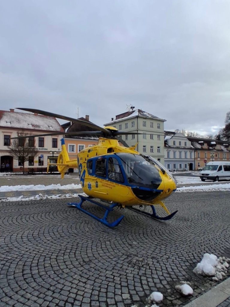 BECHYNĚ – Vrtulník letecké záchranné služby Kryštof 13 mohli vidět lidé v úterý 17. února odpoledne na náměstí T. G. Masaryka v Bechyni. Letečtí záchranáři spěchali na pomoc zraněnému muži a právě náměstí bylo nejvhodnějším místem, kde mohl vrtulník přistát. Se zajištěním místa pomáhali také policisté.