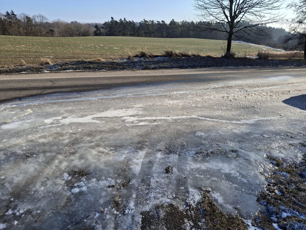 Správa a údržba silnic Jihočeského kraje zareagovala na tuto zprávu obratem. Napřed se pokusila led posypat, pak rozsolit, ale sůl v mrazivé noci nepomohla. Dnes tedy silničáři najeli s technikou, led rozbili a odstranili. Především by ale bylo třeba odstranit příčinu – podle silničářů zřejmě na sousedním poli těžká technika poničila meliorace a voda tak vytéká na silnici. Pravděpodobně by stačilo ji v bezmrazém období prohrábnutím přesměrovat jinam.