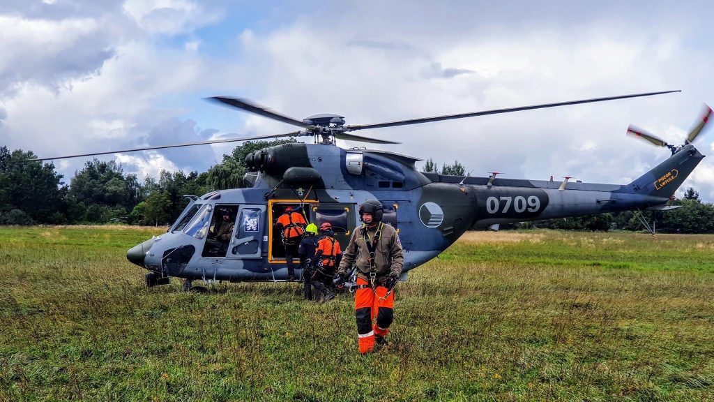 Letečtí záchranáři trénovali v Novém Vrátě záchranu lidí z komína