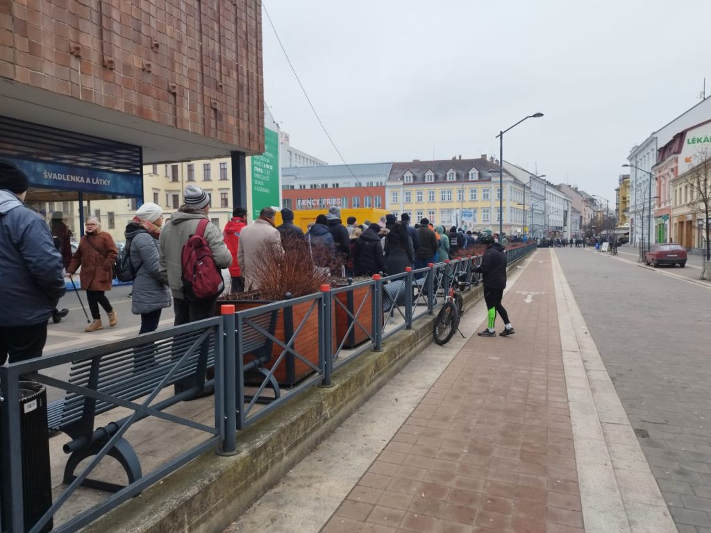 Lidé čekali na tisícikorunu s kolkem několik hodin. První přicházeli už ve čtyři ráno