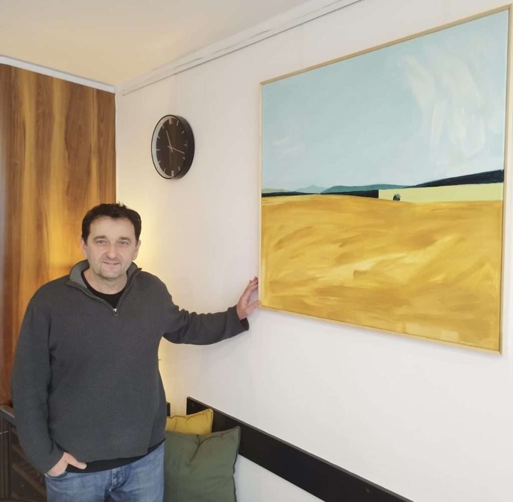 „Téměř všechny obrazy, které jsem dosud namaloval jsou z okolí Holkova u Velešína. Byla zde vždy krásná a klidná krajina s dalekými výhledy a prostorem pro snění a představy,“ říká českokrumlovský malíř Jirka Paclík a prozrazuje, jak vznikají jeho díla. „Pozoruji krajinu, nechávám jí plynout svojí hlavou a někde tam vždy něco uvízne, nějaký moment, nějaké místo. Uvnitř hlavy pak vše v klidu dozrává, vypadávají detaily, až nakonec přijde kompozice celkové krajiny. Nechám ji na sebe chvíli působit a pak zamířím do ateliéru. Prohlížím skicář a vybírám, jak které téma zpracuji,“ vysvětluje Jiří Paclík. Na malá plátna pak vytváří složitější kompozice, zatímco na velkých nechává dominovat krásu volné krajiny.