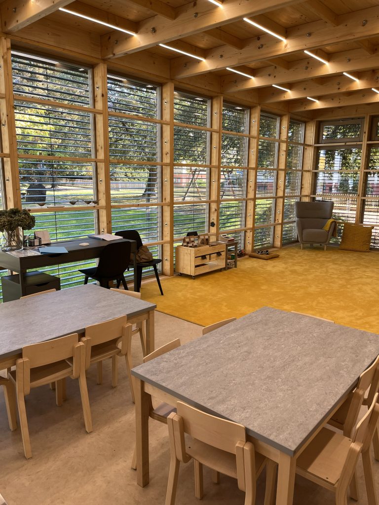 V nové přírodní učebně jsou umístěni předškoláci. Učebna je propojená s přírodní zahradou a umožňuje celoroční vzdělávání venku i uvnitř. Je vybavena moderními prvky a rozšiřuje možnosti, které školka dětem nabízí. „Tím, že je budova hodně prosklená, mají děti přímý kontakt s přírodou. Vidí, jak venku sněží, prší, kvetou květiny nebo padá listí, a během dne pozorují různé změny v přírodě,“ řekla ředitelka. „Učebna je koncipovaná tak, že mohou děti vyběhnout rovnou ven. Nejenže jim učitelka přírodní jevy ukáže na obrázku, ale mohou je vidět přímo,“ dodala.