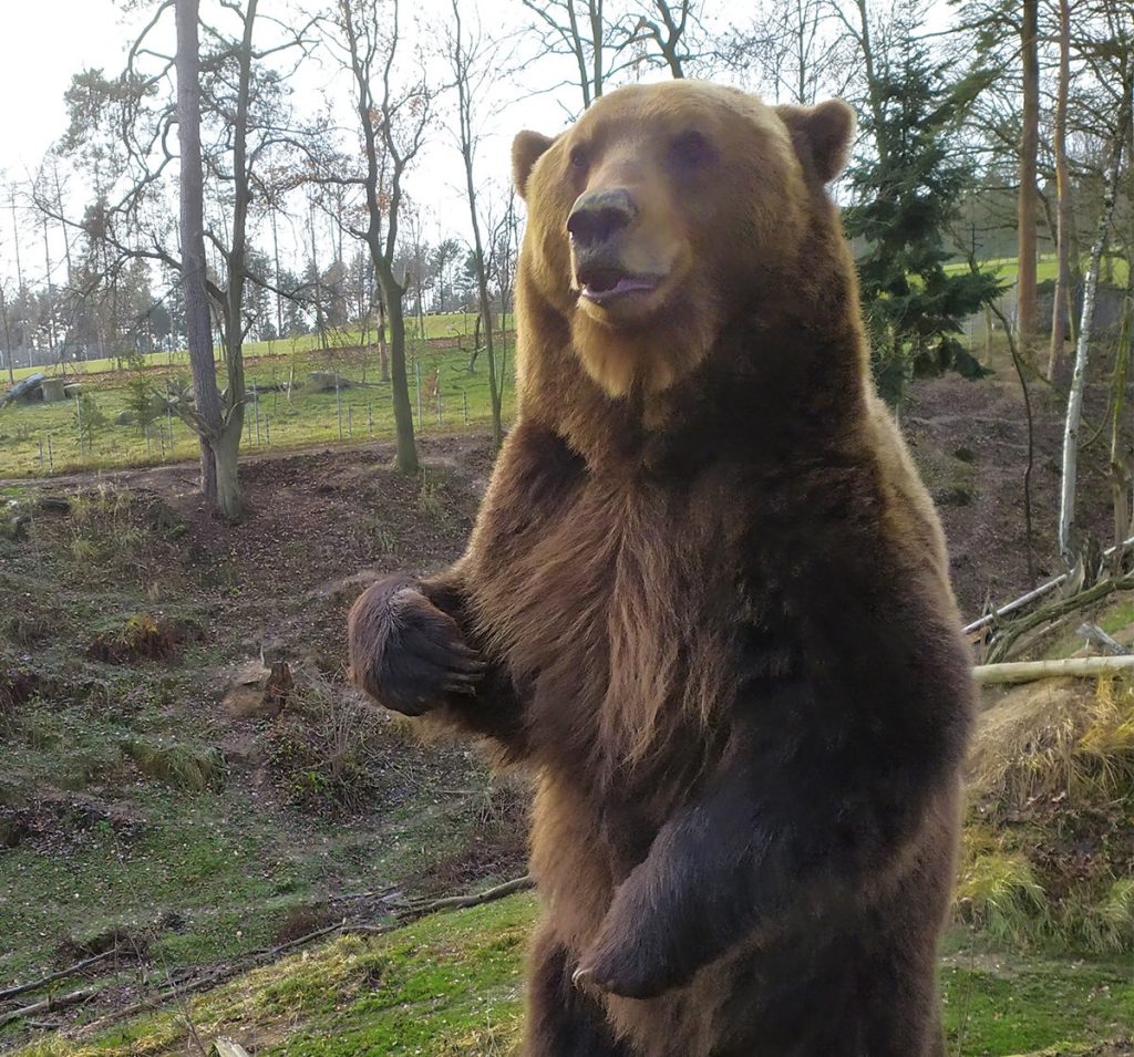 Medvěd hnědý je na českém území veden jako kriticky ohrožený druh. Kromě člověka nemá jiného přirozeného nepřítele. Většinu života tráví samotářsky, společnost opačného pohlaví vyhledává jen v době páření. Oproti běžným představám až 90 procent jeho potravy tvoří rostlinná strava, jako jsou různé výhonky rostlin, lesní plody, kořínky či ořechy. Jako všežravec nepohrdne ani mršinami, umí také velmi dobře lovit ryby. Denně spořádá až 20 kilogramů potravy.
