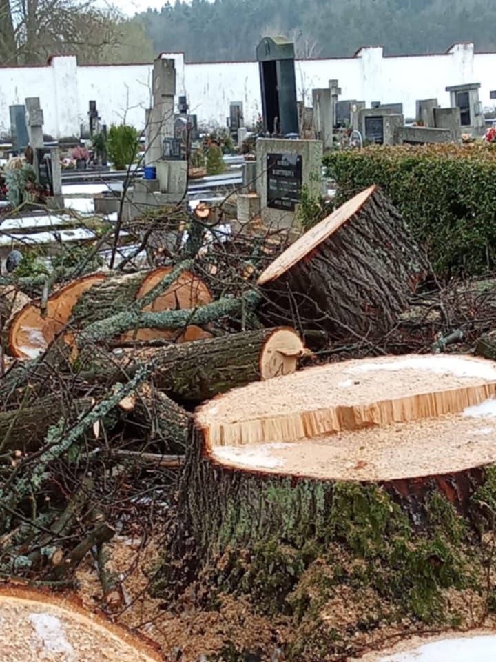 „Na hřbitově byly pokáceny dvě vzrostlé lípy. Odřezávali je zřejmě shora tak, že kusy padaly dolů. Části kmene a větve se válely všude kolem i na hrobech včetně našeho. Navíc byly po náhrobních deskách rozprášené piliny a hobliny, které v tomto počasí přimrzly. K našemu hrobu jsme se přes ten nepořádek vůbec nedostali,“ byla Hana Joštová hodně rozzlobená.