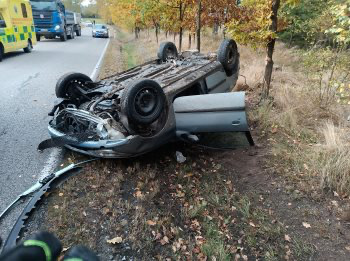 JINDŘICHOHRADECKO – K nehodě mezi obcemi Lodhéřov a Deštná, při které se převrátilo auto na střechu, spěchali ve čtvrtek 23. října kolem půl desáté dopoledne hasiči, záchranáři i policisté. Podle prvotních informací skončili v péči lékařů čtyři lidé.
