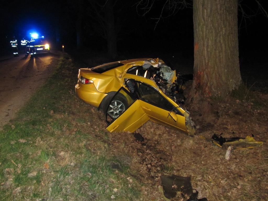 Zhruba 250 metrů za Tučapy se dostal řidič do protisměru a čelně narazil do vzrostlého stromu. „Ani okamžitý zásah zdravotnické pomoci nezachránil život 19letého mladíka a 15leté dívky, kteří podlehli těžkým zraněním neslučitelných se životem,“ uvedl policejní mluvčí Milan Bajcura.