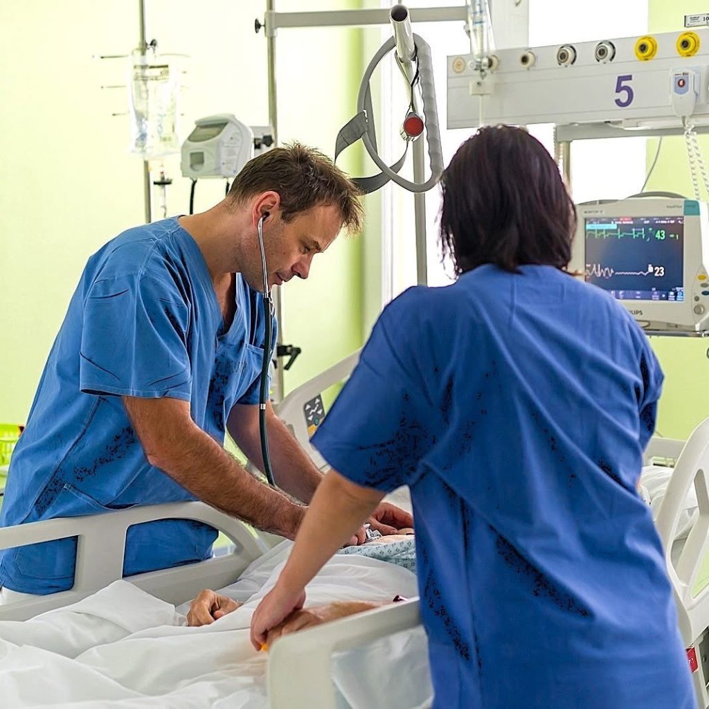 Do akutní péče o pacienty s cévní mozkovou příhodou zasahují také internisté. „Úzce spolupracujeme i s interním oddělením, které se zabývá příčinami vzniku cévní mozkové příhody u konkrétních pacientů, respektive jejich diagnostikou. Tým kardiologů v čele s primářem interního oddělení Ladislavem Gergely každého takového pacienta vyšetřuje a zjišťuje, proč u něj k mrtvici došlo. Výsledky vyšetření nám pomáhají jak při léčbě, tak v plánovaní dalšího postupu,“ řekl Karel Bechyně.