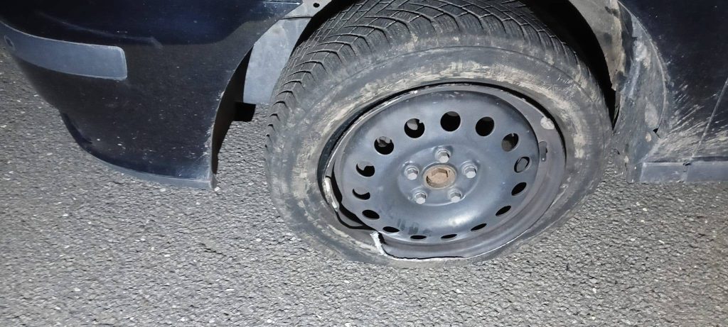 TÁBOR – V sobotu 11. října ráno upozornil hlídku táborských strážníků v Soběslavské ulici jeden z občanů, že nedaleko kruhového objezdu někdo spí v nastartovaném autě. Při příchodu k vozidlu strážníky ihned upoutaly známky poškození – vůz měl zdevastované přední kolo a bylo evidentní, že musel krátce před zastavením najet na obrubník.