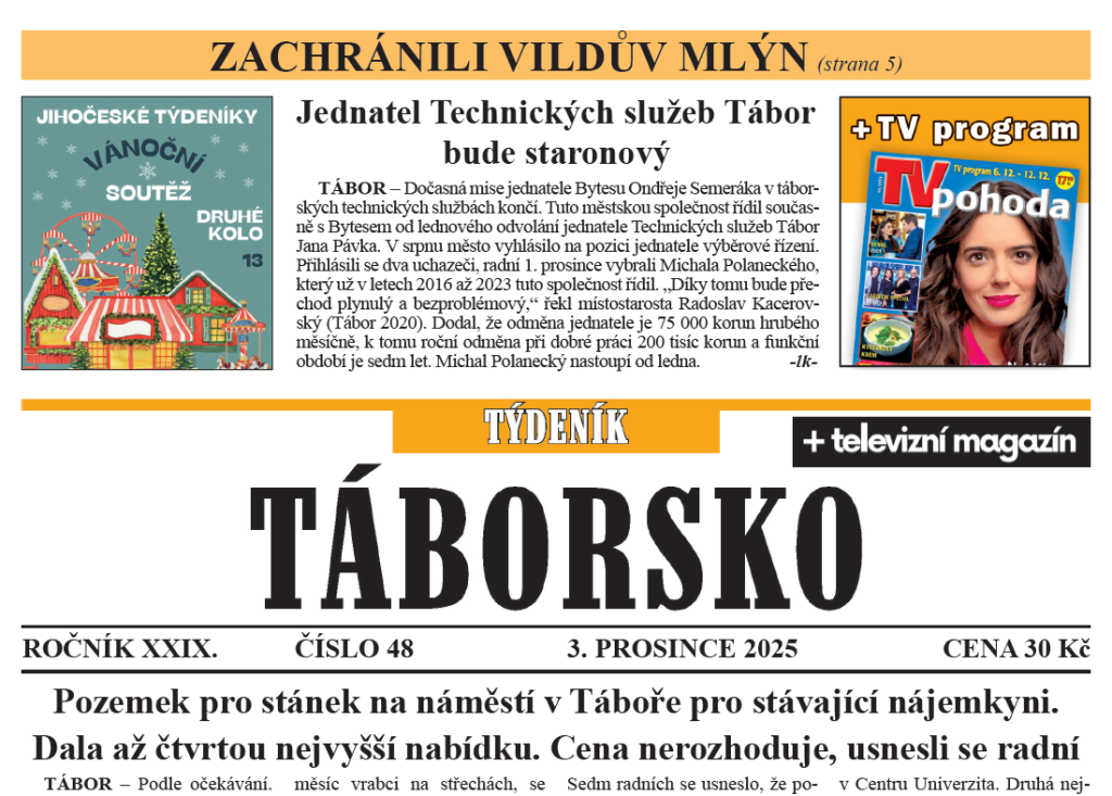 O čem píše čerstvý Týdeník Táborsko?