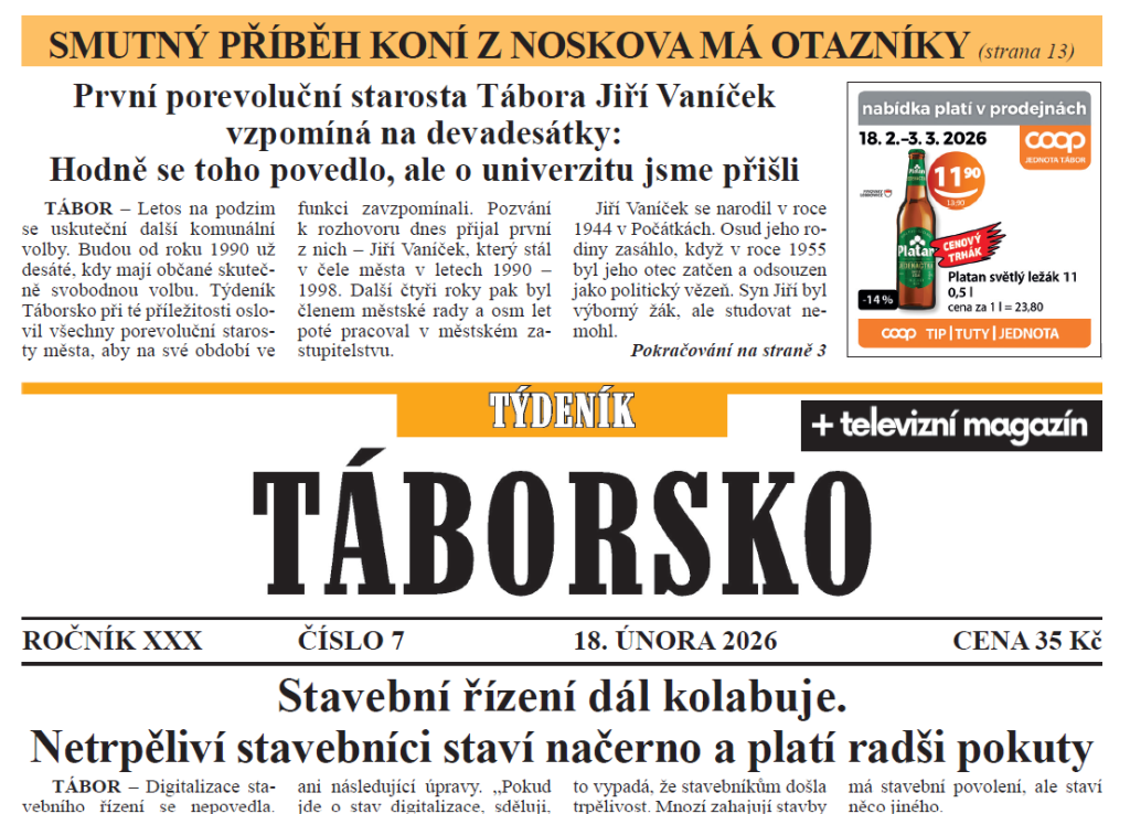 O čem píše čerstvý Týdeník Táborsko?
