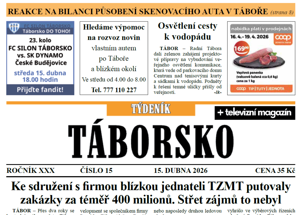 O čem píše čerstvý Týdeník Táborsko?