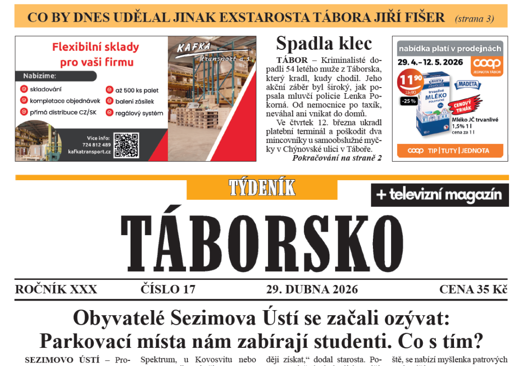 O čem píše čerstvý Týdeník Táborsko?
