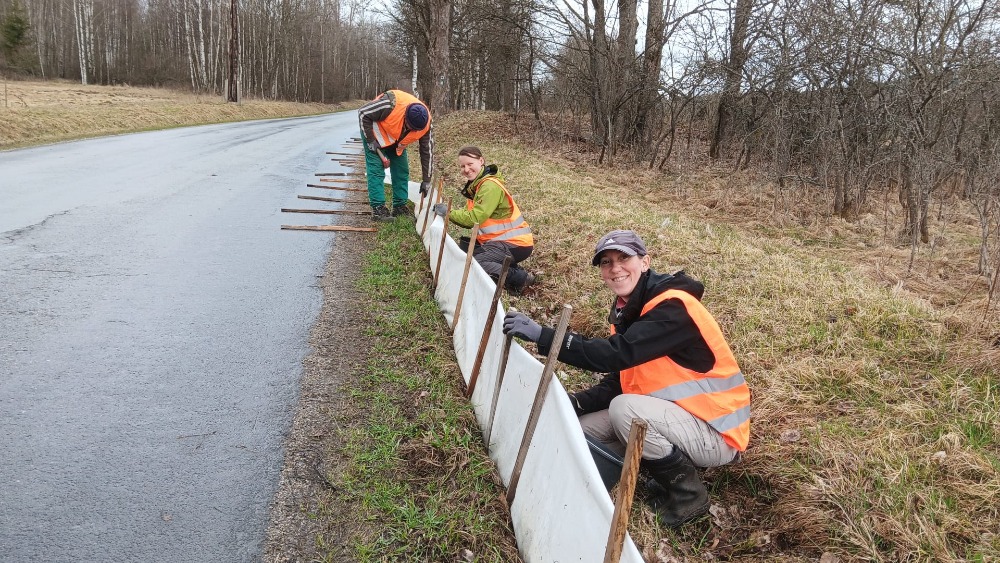 Po skončení rozmnožování zase obdobným způsobem zajišťují cestu zpět. Umožňují jim tak bezpečné překonání silnic u Šumavských Hoštic, u Želnavy a na dvou lokalitách u Volar. Celkem takto každou sezonu postaví skoro dva kilometry zábran. U Prachatic, Husince a Vlachova Březí zase stejnou činnost zajišťuje spolek Pelyněk, na Strakonicku a Netolicku pak Český svaz ochránců přírody Strakonice a u Českých Žlebů strážci Národního parku.