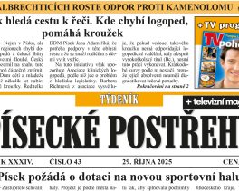 Písek žádá o další dotaci na novou sportovní halu ■ Kde chybí logoped, pomáhá kroužek ■ Restaurace na zimním stadionu v Písku je znovu na prodej ■ Fotbalisté Písku doma nezaváhali. Jak utkání okomentoval Milan Nousek? ■ Mirovice vybojovaly bod, Semice i Protivín vyšly naprázdno. Nechybí pozápasové ohlasy ■ Házenkářky…