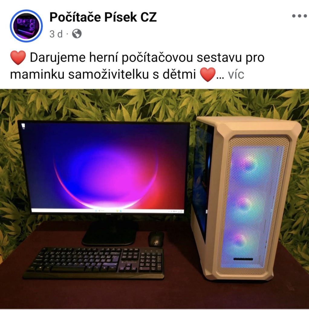 PÍSEK – Dobrý skutek se rozhodl udělat jednatel firmy Repasované počítače Písek Petr Sýkora. Chce pomoci rodičům samoživitelům, pro které je těžké pořídit dětem počítačovou sestavu. Vyhlásil proto akci na Facebookovém profilu své firmy. Ta daruje samoživitelům pro děti kompletní herní sestavu, tedy počítač, monitor, klávesnici a myš.