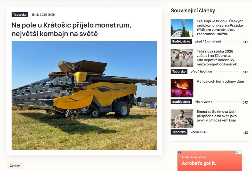 Nejčtenějším článkem roku tak byla zpráva Poznáváte mladou ženu na fotografii? Dejte vědět policistům. Vyšla v červenci a týkala se krádeže ve Strakonicích. Zaznamenala 119 017 zobrazení od 90 026 uživatelů, to znamená, že někteří se ještě opakovaně vraceli. Druhé místo roku určitě překvapí. Zaujal ho příspěvek Na pole u Krátošic přijelo monstrum, největší kombajn na světě. Měl 84 133 zobrazení od 64 623 uživatelů. Bronz bere příspěvek Rekordní výhra v loterii. Jihočech získal 50 milionů za tři stovky. Ten měl 47 528 zhlédnutí od 36 739 uživatelů. A pozor – do první desítky roku se propracovala třeba i zpráva o unikátní operaci prachatických ortopedů.
