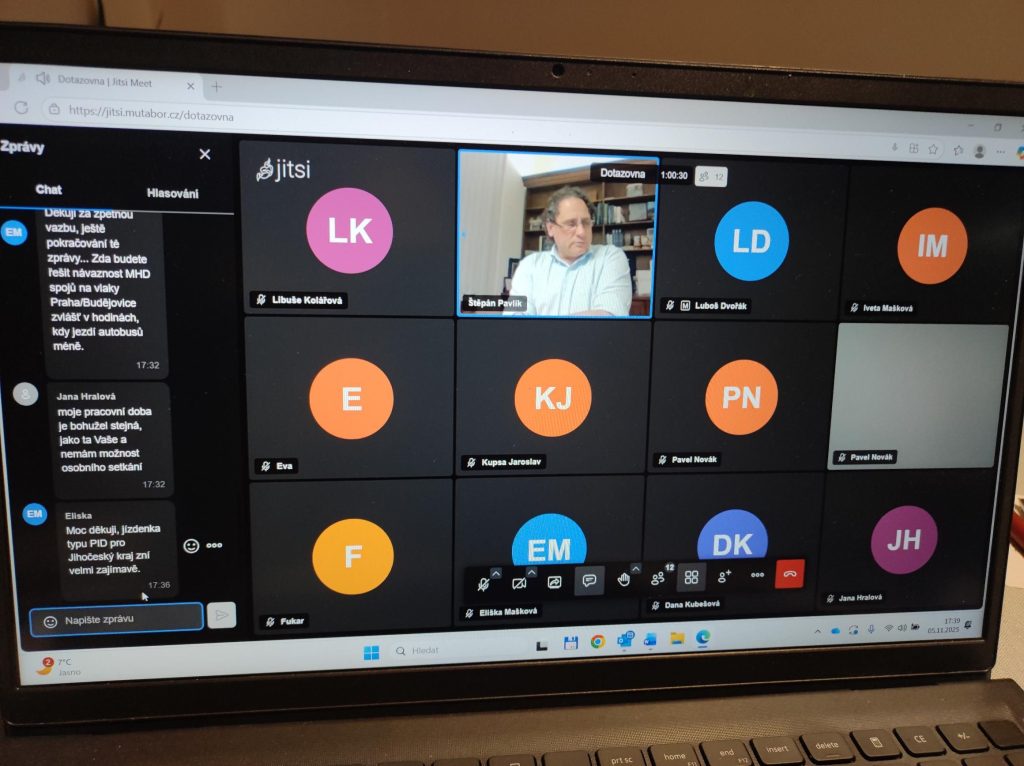 Pisatelka Eliška chtěla vědět, jestli město bude řešit návaznost městské hromadné dopravy na příjezdy vlaků od Prahy nebo Českých Budějovic, zejména v době, kdy už autobusů jezdí málo. Starosta řekl, že tento problém vázne na skluzu v zavedení Integrovaného dopravního systému, které řeší kraj.