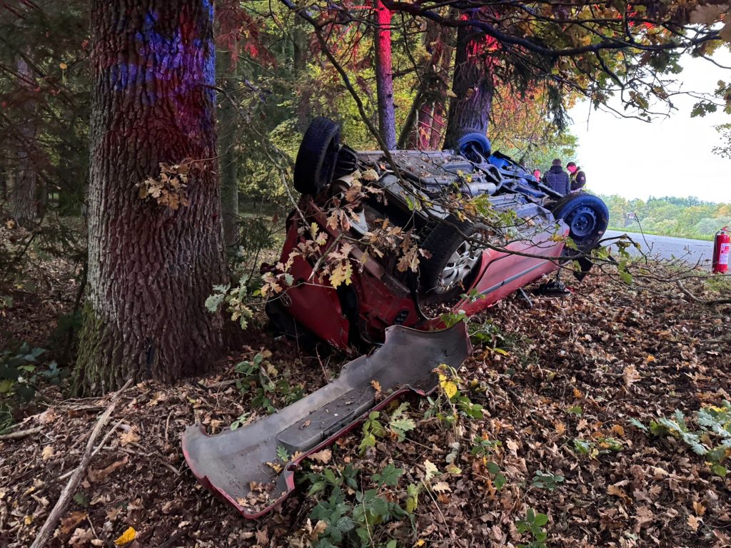ČESKOBUDĚJOVICKO – Celkem k sedmi nehodám vyjížděli v neděli 12. října jihočeští hasiči na různých místech kraje. Jedna z nejvážnějších nehod se stala u obce Doudleby na Českobudějovicku, kde skončilo auto na střeše. Zranili se v něm tři mladí muži.