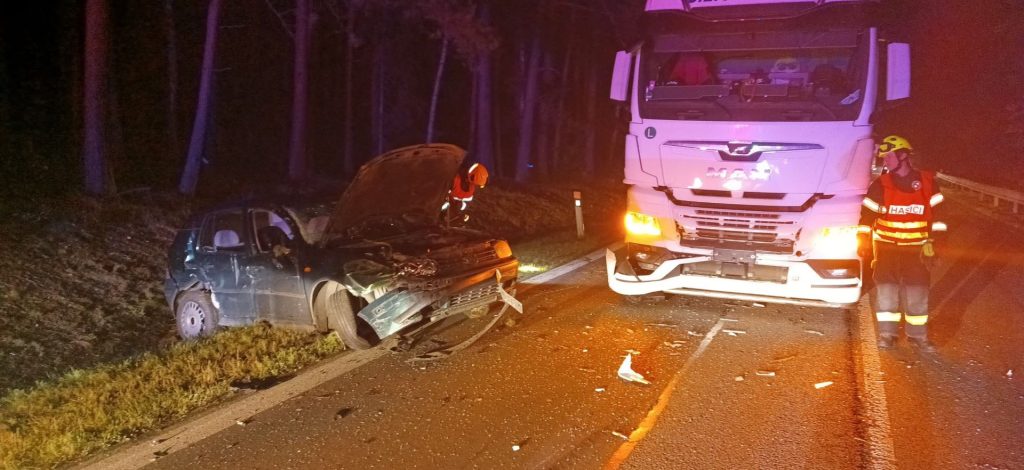 ČESKOKRUMLOVSKO – Střet osobního a nákladního auta vyšetřují od pátečního rána policisté na Českokrumlovsku. Při nehodě, která se stala krátce před tři čtvrtě na pět u obce Skoronice se zranil mladý řidič osobního vozidla.